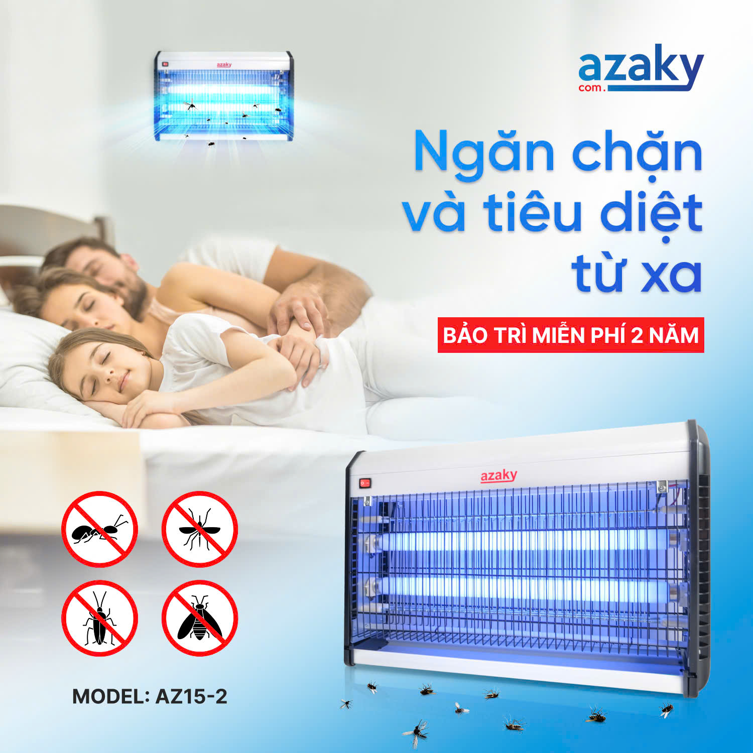 Bạn sẽ thực sự bất ngờ cũng như bị thuyết phục khi biết đến các ưu điểm vượt trội của đèn diệt côn trùng Azaky AZ15-2.